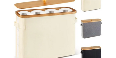 The toilet paper basket is made of durable waterproof Oxford fabric and high quality bamboo frame with sealing design all around, moisture and dust resistant,Comues in multiple colors & is very affordable. It is equipped with a thick high quality bamboo lid, this lid is hand polished through 33 processes, presenting a sturdy, smooth and bright board surface, easy to clean and maintainThe lid is specially designed with a small carrying handle for easy picking up and down. #organized #neat #clean #toiletpaperstorage #storage #toiletpaper #bathroom